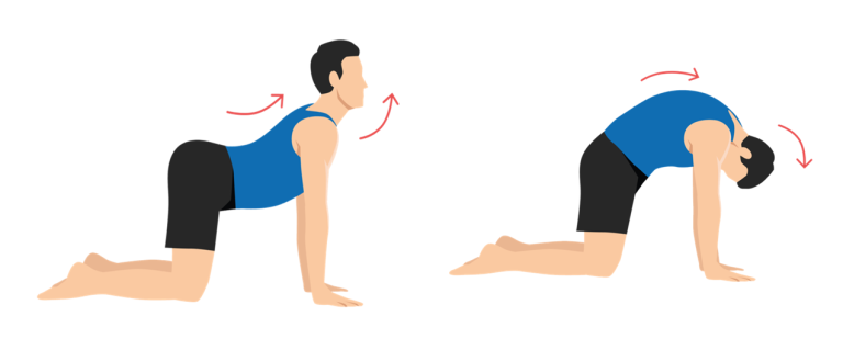 This warms the whole body, increases circulation, and wakes up muscles that get “sleepy” when you’re inactive. It is both a stretch and a mild strengthener. The flow is also a foundation of Vinyasa’s sun salutations, taking you one step closer to an actual yoga practice. Aim for ten transitions.